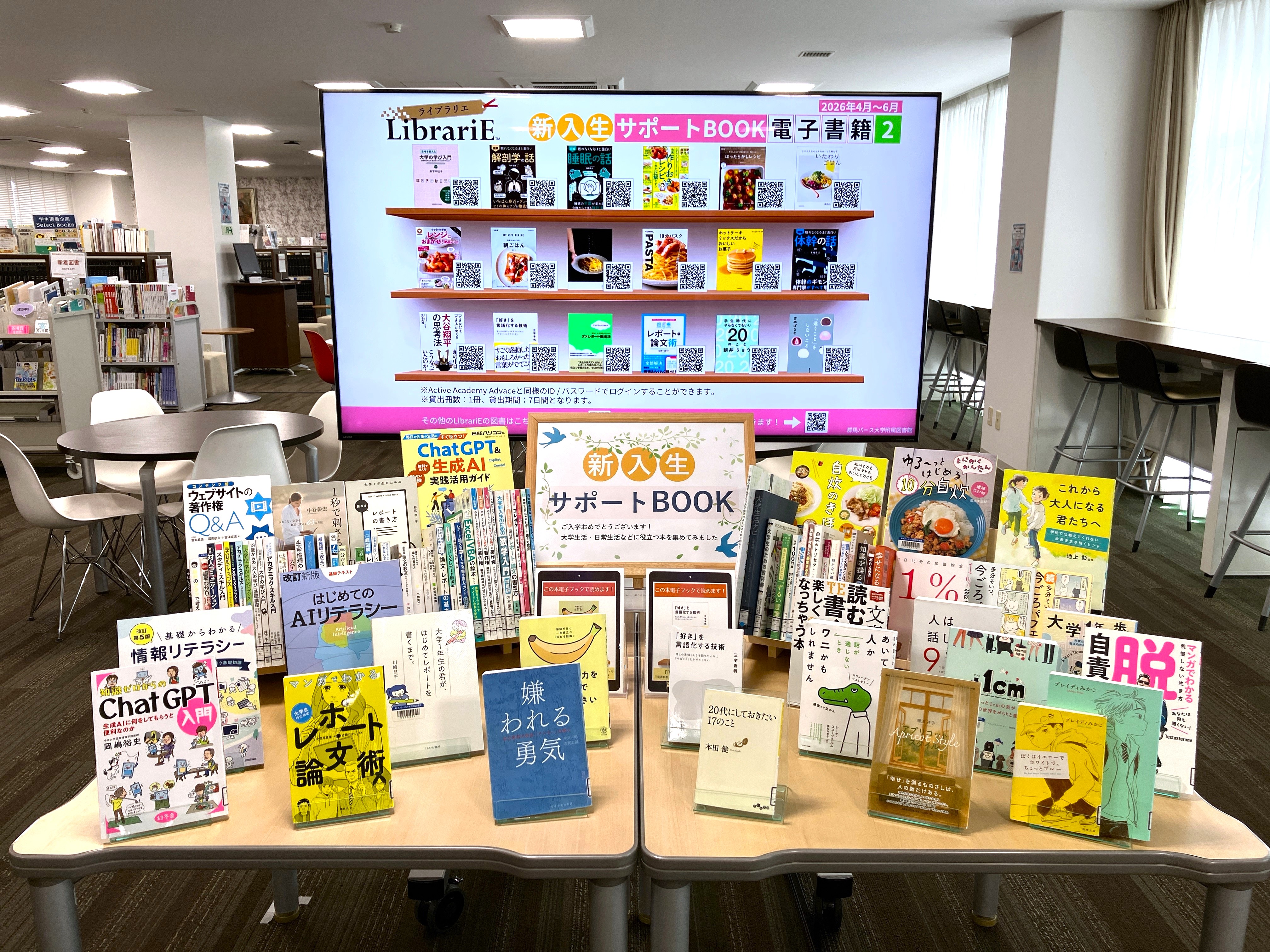 - また、今年度は電子ブックサイト「LibrariE」で読める大学生活のお役立ち本もディスプレイで紹介していますので、使ってみてください!