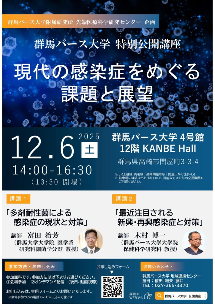 12月6日(土)、特別公開講座「現代の感染症をめぐる課題と展望」を開催いたします。