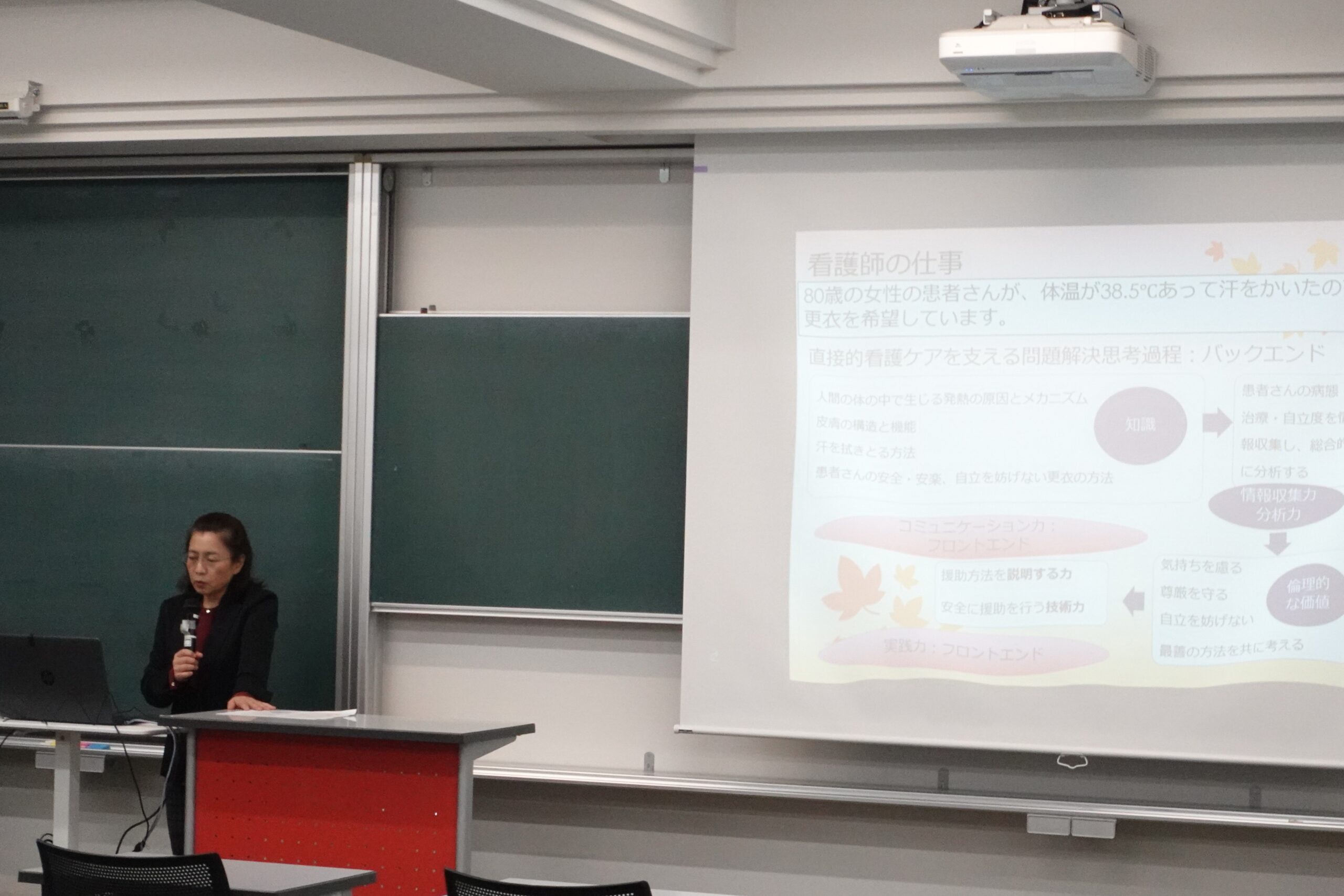 【概要】看護師の仕事というと「注射や採血」「血圧測定」などの直接的なケアに目がいきがちですが、その裏側には、看護師一人ひとりの看護に対する「思い」や「考え」があります。このことを、看護師・看護部長・看護教員を務めた経験から説明し、看護の魅力をお伝えしました。