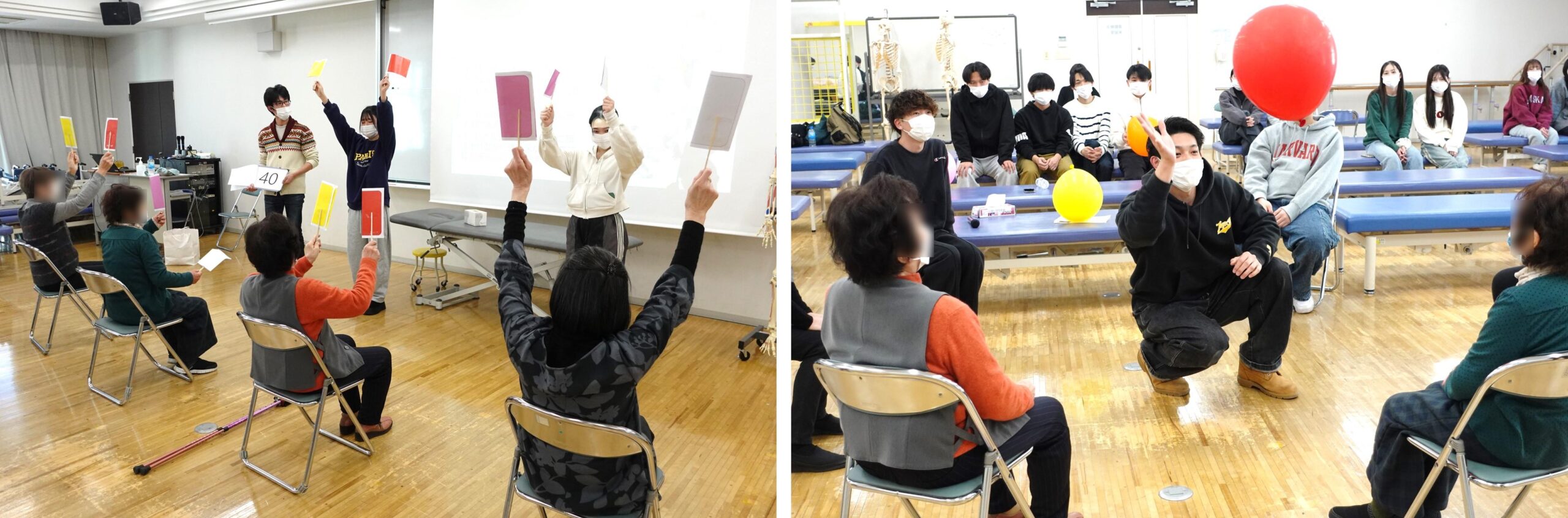 今回は、大学近隣に在住する高齢者を学内にお招きし、理学療法学科の学生たちが、介護予防のための健康教育・運動指導を行いました。
