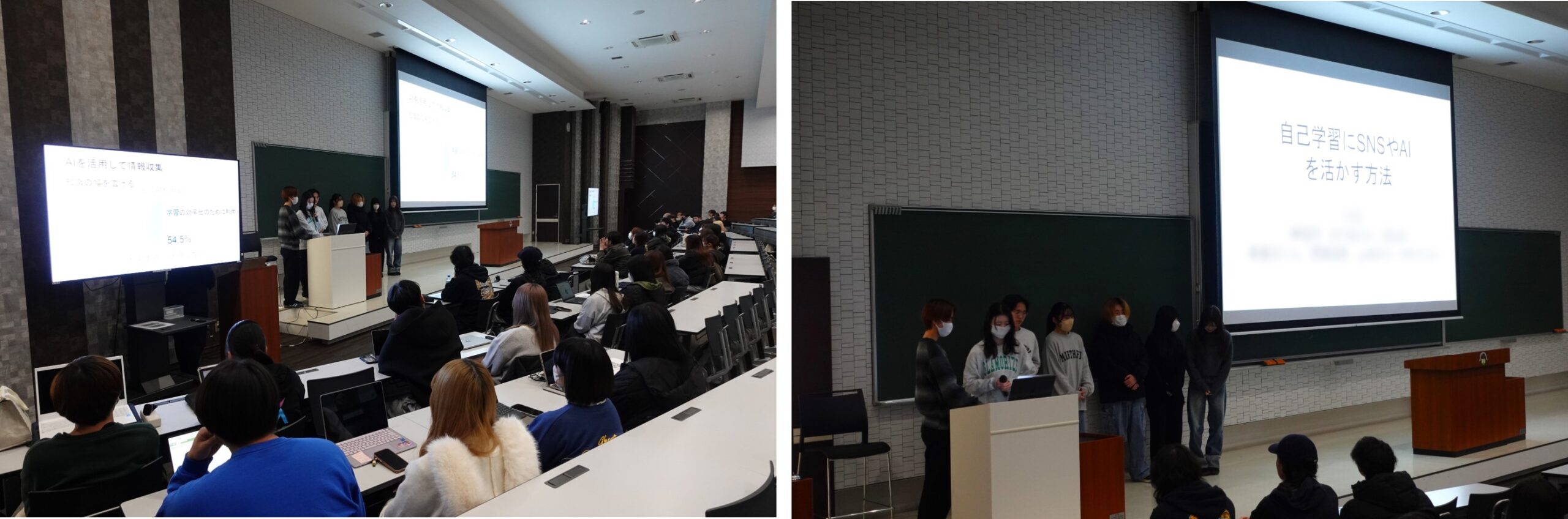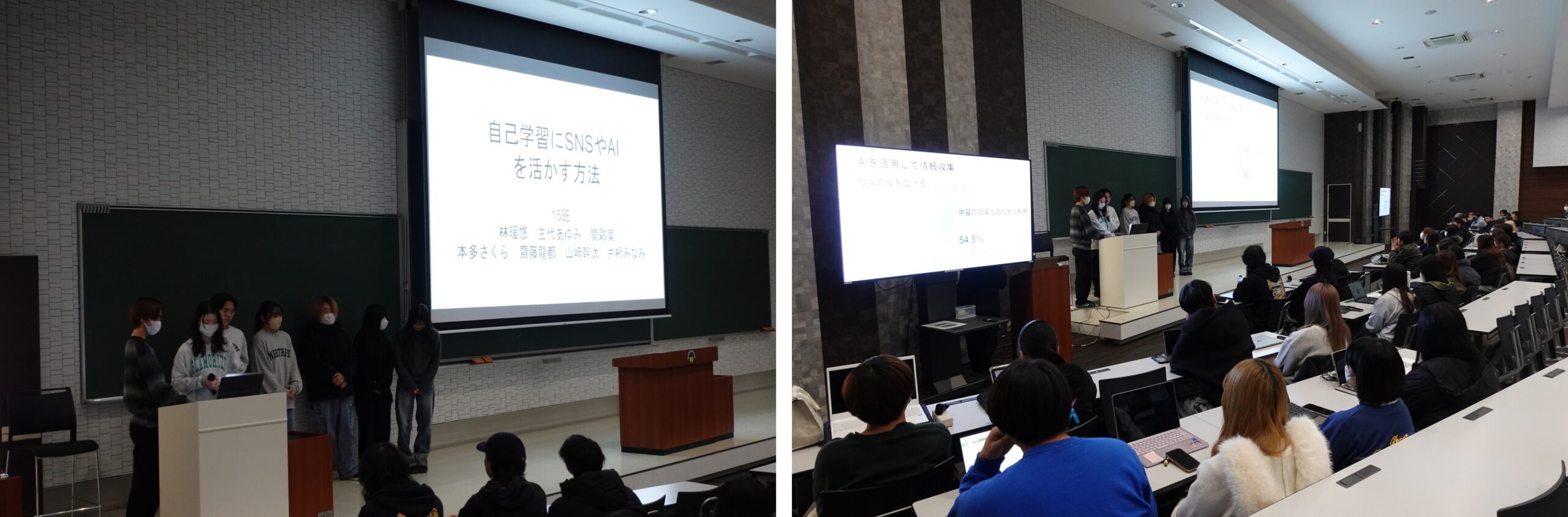 今回は、3学科合同のグループで、今までの授業の集大成を発表しました。