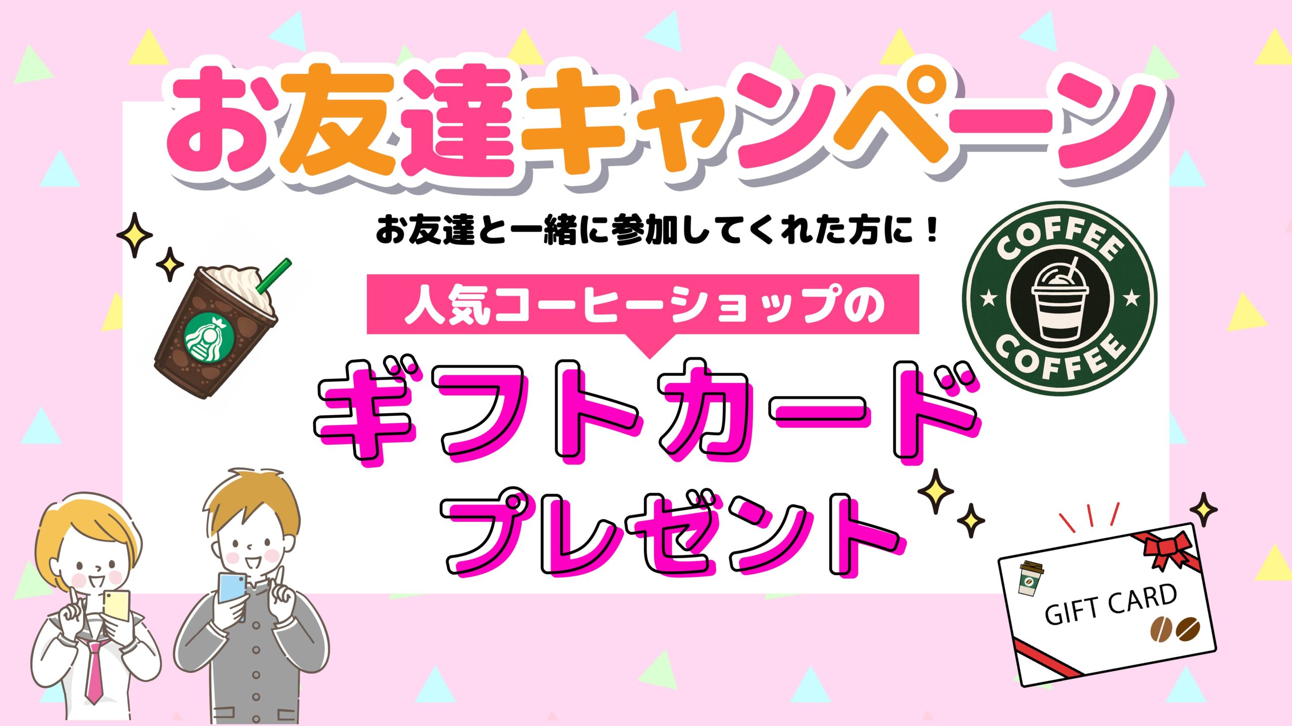 ②お友達と一緒に参加すると、人気コーヒーショップのギフトカードをプレゼント🌟
