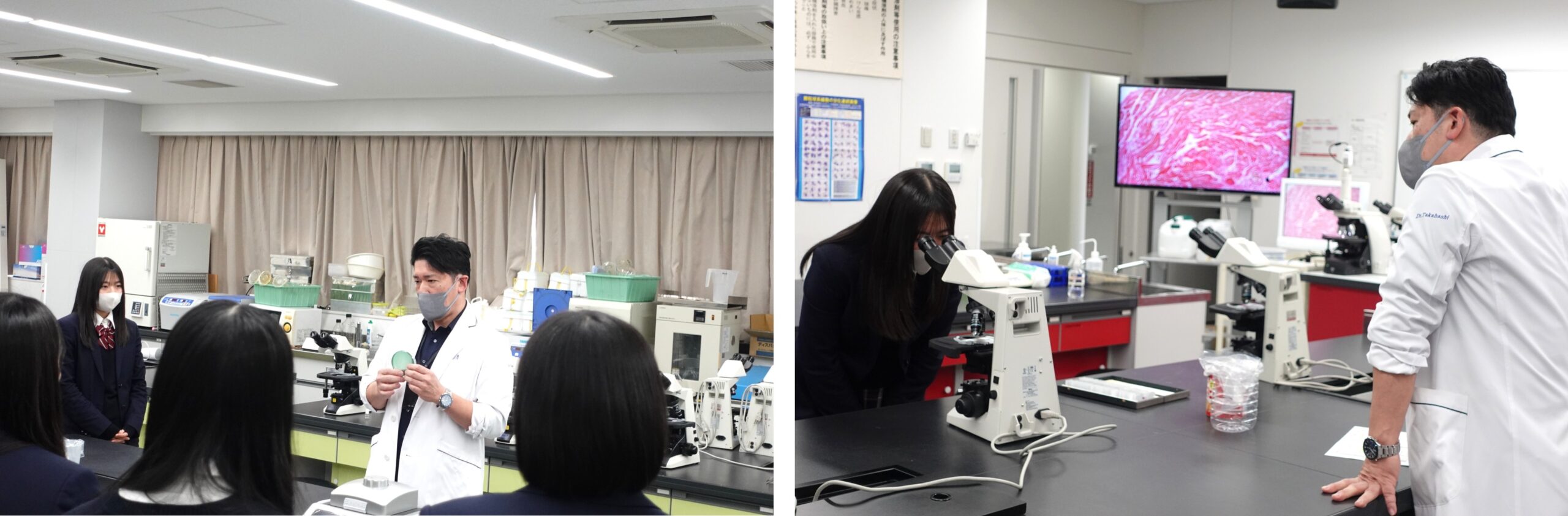 本学の1号館にて大学紹介を行い、看護学科・理学療法学科・作業療法学科・言語聴覚学科・検査技術学科の実習室を見学しました。