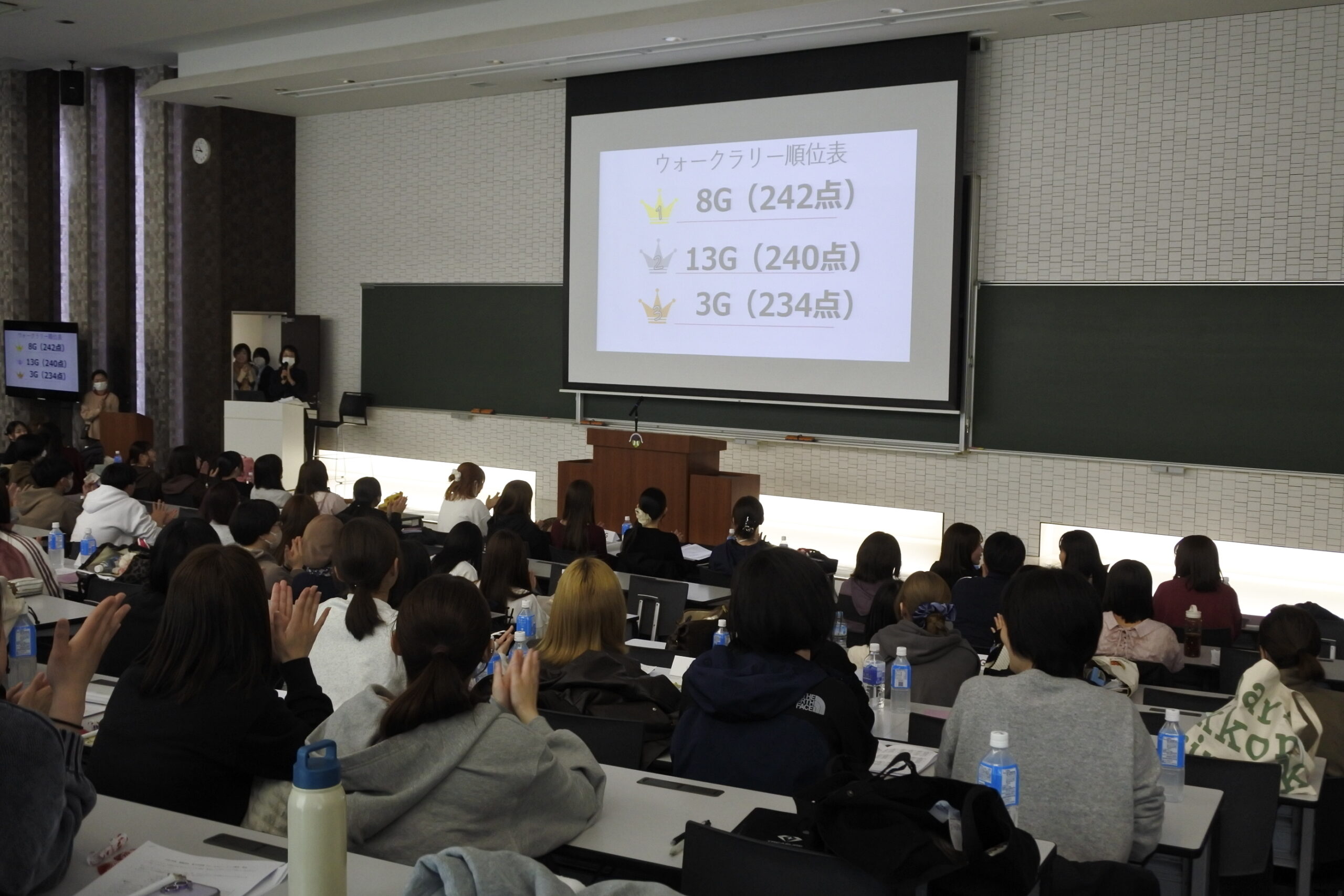 ウォークラリーの順位発表では、学生たちはドキドキしながら結果を見守っていました💓