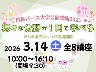 群馬パース大学地域連携センターでは、地域貢献を目指す取り組みの一環として、日ごろの教育・研究の成果を地域社会に還元するとともに、皆さまの生涯…